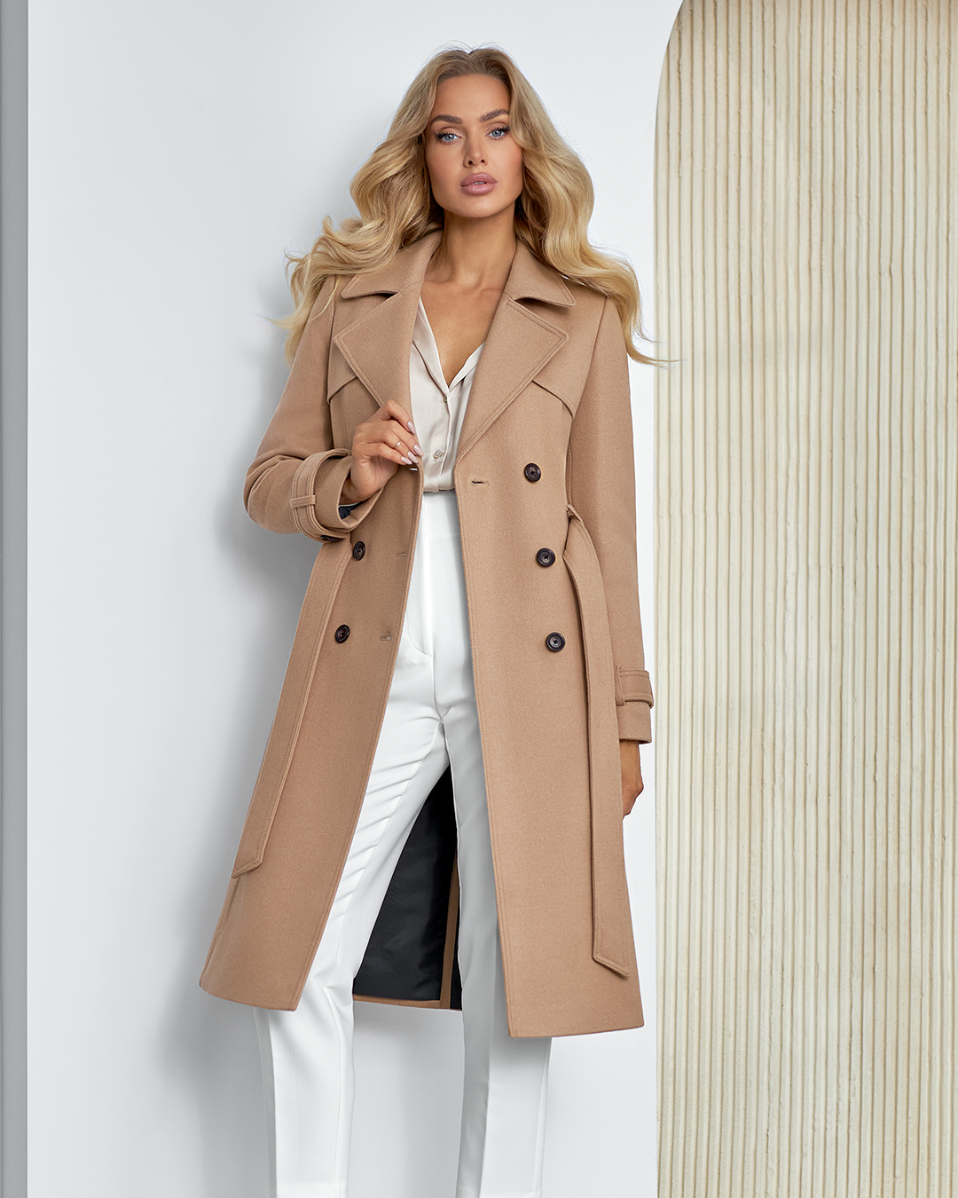 Alexa to nie tylko klasyka – to elegancja w najczystszej formie. Odkryj płaszcz, który podkreśli Twoją kobiecość w najchłodniejsze dni. Starannie skrojony, aby subtelnie dopasować się do Twojej sylwetki, z paskiem, który podkreśli talię i nada proporcje marzeń. Dwurzędowe zapięcie, kołnierz z klapami i rozporek z tyłu. Długość za kolano sprawia, że to idealny wybór, zarówno do pracy jak i na co dzień. W pełni ocieplany i wykończony podszewką, zapewni Ci ciepło i komfort w sezonie jesienno–zimowym.