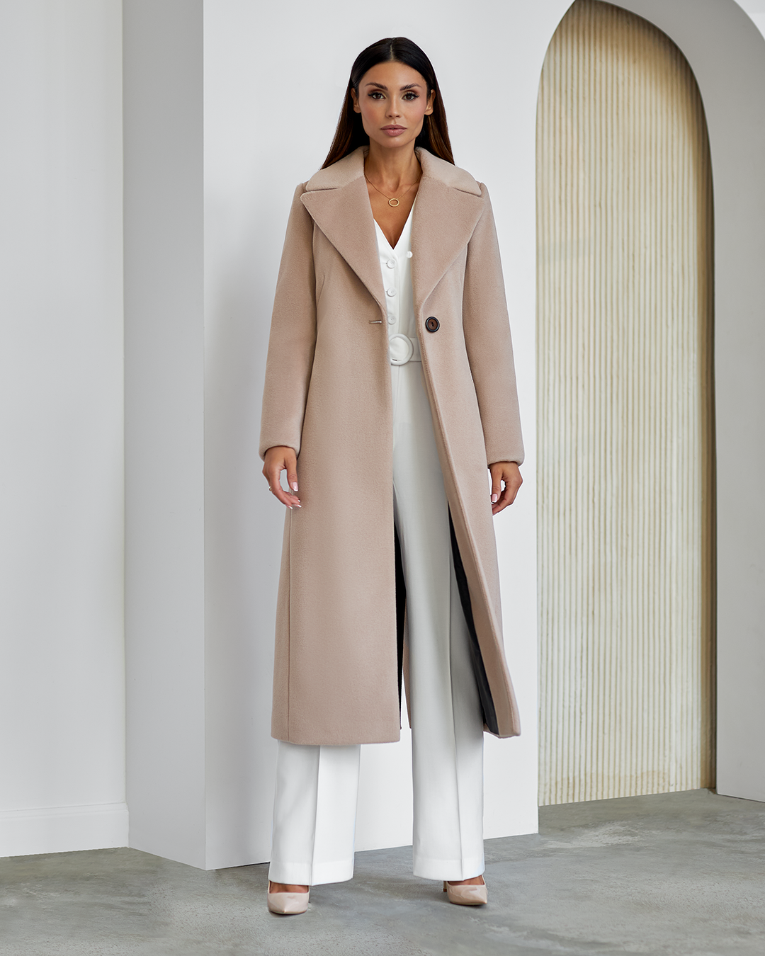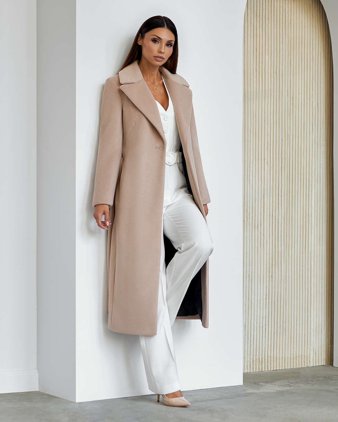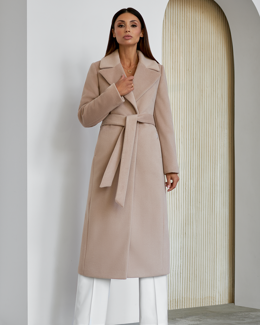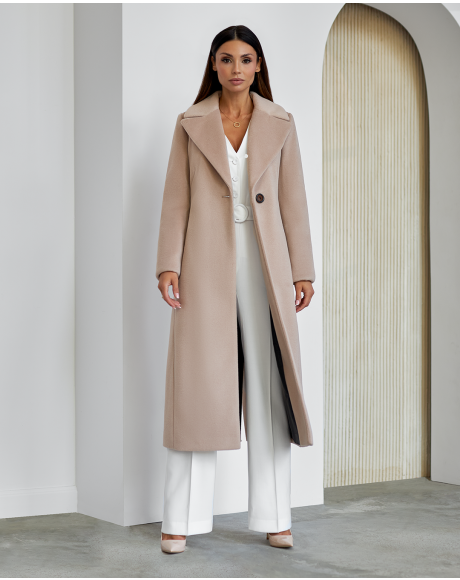 Płaszcz Amber z kolekcji jesień–zima to esencja wyrafinowanego stylu dla kobiet, które cenią sobie ponadczasową elegancję, doskonałą jakość i perfekcyjne wykończenie. Model zachwyca klasyczną linią i dopasowaniem, które podkreśla sylwetkę. Kołnierz z klapami oraz zaznaczona talia – regulowana paskiem – tworzą szlachetną formę z nutą nowoczesnej kobiecości. Kieszenie i starannie wszyty rozporek z tyłu łączą funkcjonalność z luksusowym minimalizmem. Płaszcz został ocieplony i wykończony wysokogatunkową podszewką, która zapewnia komfort w zimowe dni, nie rezygnując przy tym z lekkości i elegancji. Długość dobrana tak, by chronić przed chłodem, a jednocześnie doskonale prezentować się zarówno w stylizacjach dziennych, jak i wieczorowych.