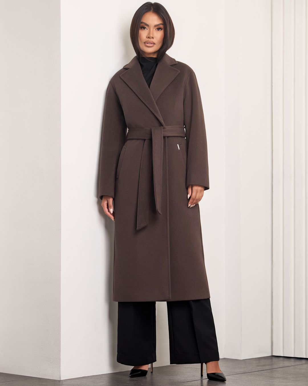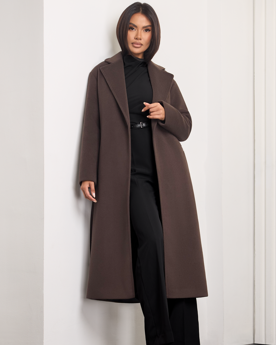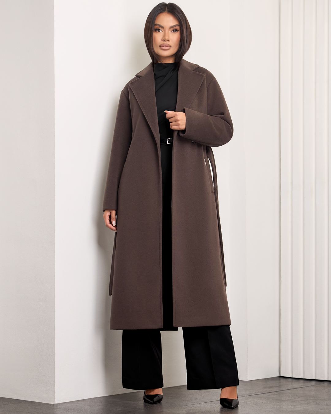 Dakota to stylowy, długi płaszcz, który łączy klasykę z nowoczesnym luzem. Kołnierz z klapami i zapięcie na guziki podkreślają elegancki charakter, a opuszczona linia ramion dodaje mu swobodnego, współczesnego akcentu. Pasek w talii pozwala dopasować fason do sylwetki, a praktyczne kieszenie po bokach wprowadzają wygodę w codziennym noszeniu. Ocieplany i wykończony podszewką, doskonale sprawdzi się w chłodniejsze dni sezonu jesień–zima.