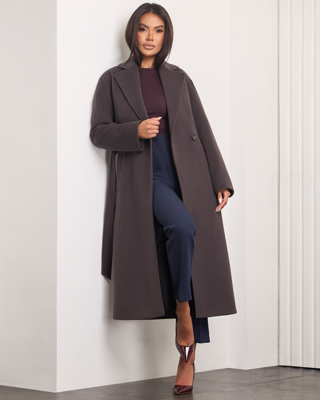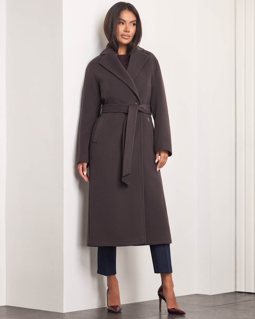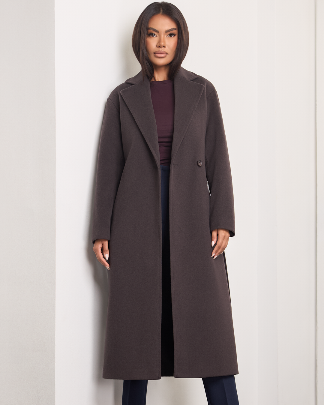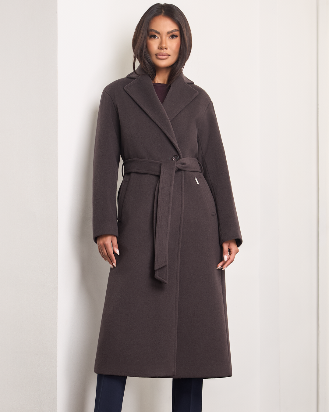 Dakota to stylowy, długi płaszcz, który łączy klasykę z nowoczesnym luzem. Kołnierz z klapami i zapięcie na guziki podkreślają elegancki charakter, a opuszczona linia ramion dodaje mu swobodnego, współczesnego akcentu. Pasek w talii pozwala dopasować fason do sylwetki, a praktyczne kieszenie po bokach wprowadzają wygodę w codziennym noszeniu. Ocieplany i wykończony podszewką, doskonale sprawdzi się w chłodniejsze dni sezonu jesień–zima.