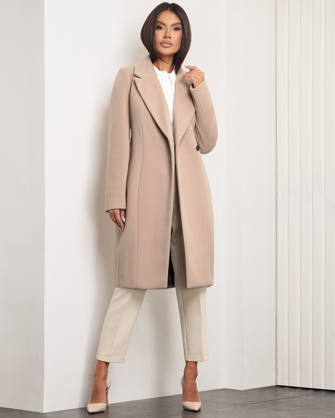 Martina to dopasowany płaszcz o klasycznej formie, który doskonale podkreśla kobiece kształty. Kołnierz z klapami i jednorzędowe zapięcie na guziki nadają mu eleganckiego charakteru, a pasek w talii pozwala podkreślić proporcje i dopasować fason do własnego stylu. Kieszenie po bokach wprowadzają wygodę, a długość do kolan sprawia, że płaszcz jest praktyczny i uniwersalny. Ocieplany i wykończony podszewką, otuli ciepłem w sezonie jesień–zima, stając się niezawodnym elementem codziennej garderoby.