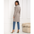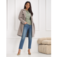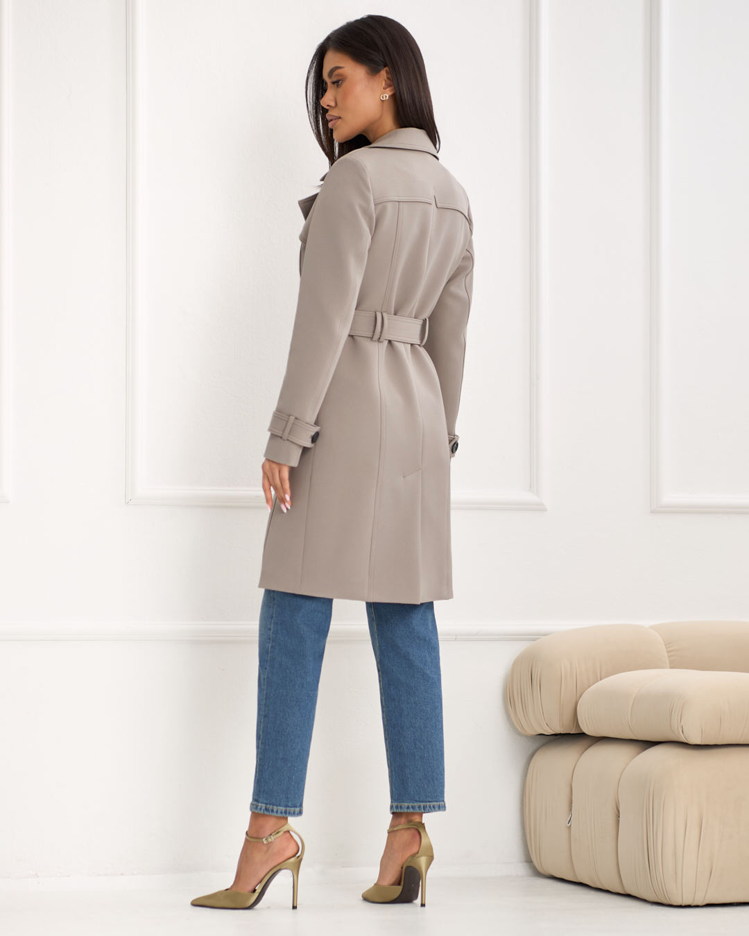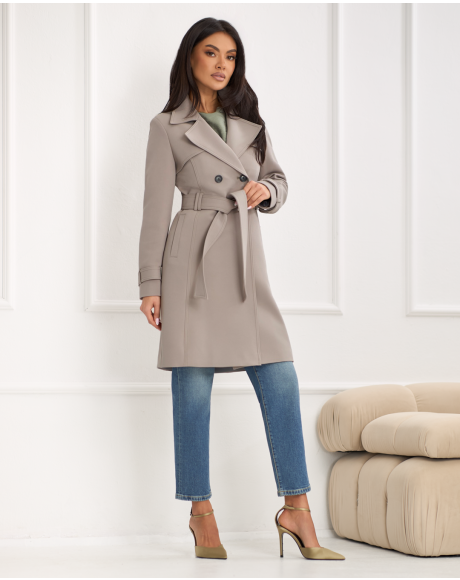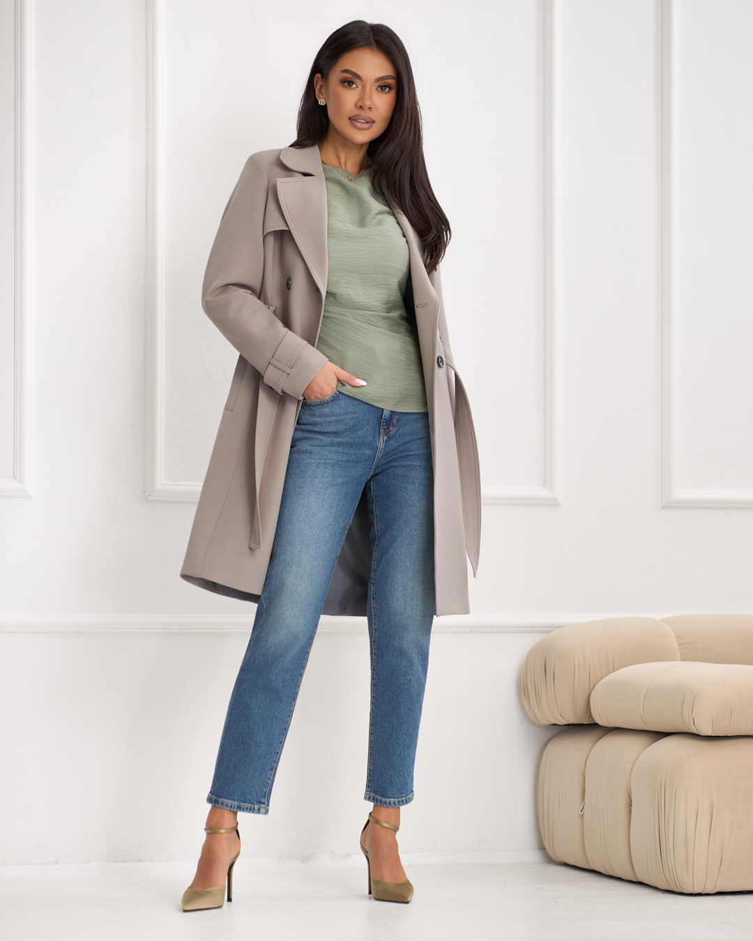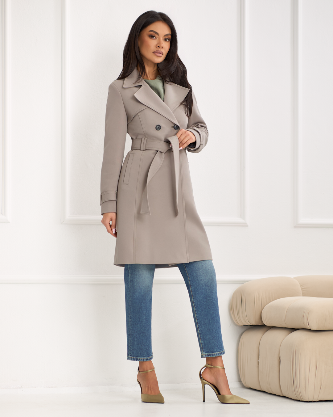 Mia to płaszcz o klasycznym fasonie trencza z dwurzędowym zapięciem i kołnierzem z klapami, które nadają mu ponadczasowego charakteru. Pasek w talii pozwala podkreślić kobiece proporcje. Boczne kieszenie dodają praktyczności, a rozporek z tyłu zapewnia wygodę i swobodę ruchu. Długość przed kolano sprawia, że prezentuje się lekko i nowocześnie. Wykończony podszewką. Mia to idealny wybór na wiosnę i lato - dla kobiet, które cenią styl, wygodę i uniwersalność w codziennych stylizacjach.