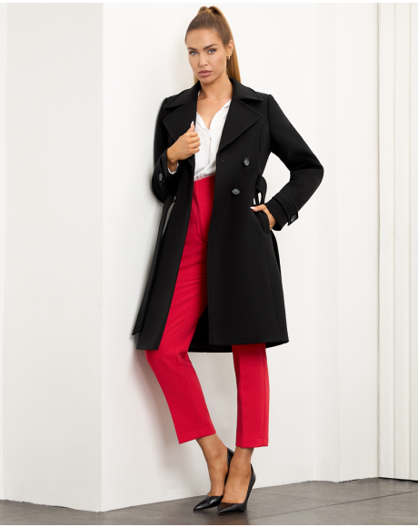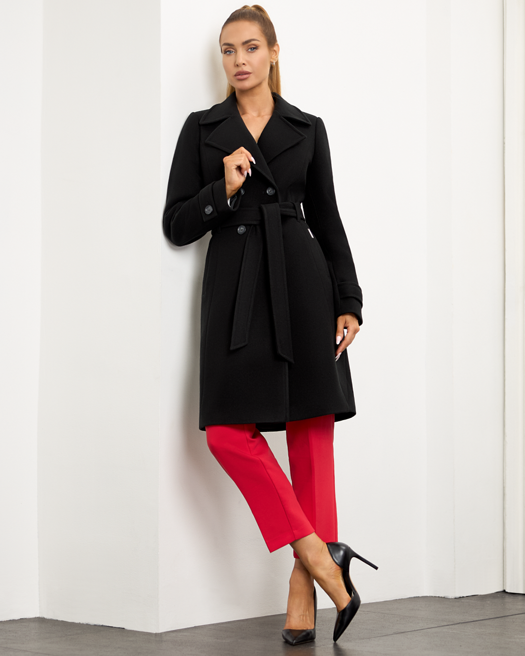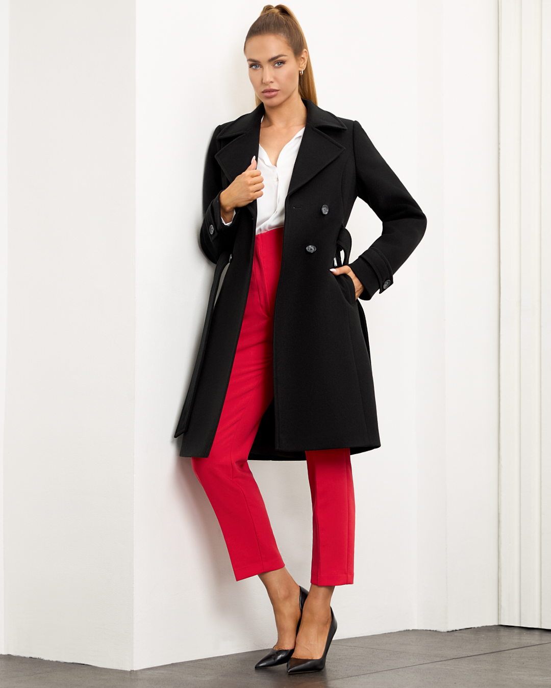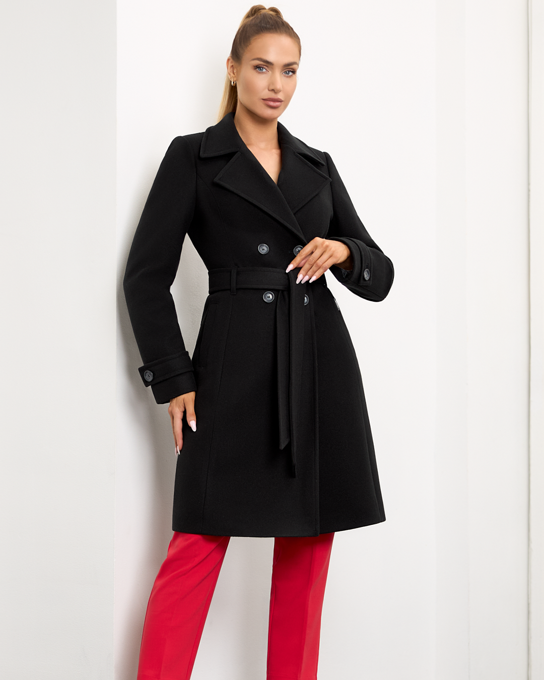 Mila to klasyczny, dopasowany płaszcz w miejskim stylu, stworzony z myślą o codziennym komforcie i elegancji. Dwurzędowe zapięcie na guziki nadaje mu wyrazistego charakteru, a kołnierz z klapami podkreśla ponadczasowy szyk. Pasek w talii pozwala dopasować fason i podkreślić sylwetkę, a kieszenie po bokach wprowadzają praktyczny akcent. Rozporek z tyłu dodaje lekkości i swobody ruchu. Ocieplany, wykończony podszewką i sięgający przed kolano, doskonale sprawdzi się w chłodniejsze dni sezonu jesień–zima, stając się niezawodnym towarzyszem codziennych stylizacji.