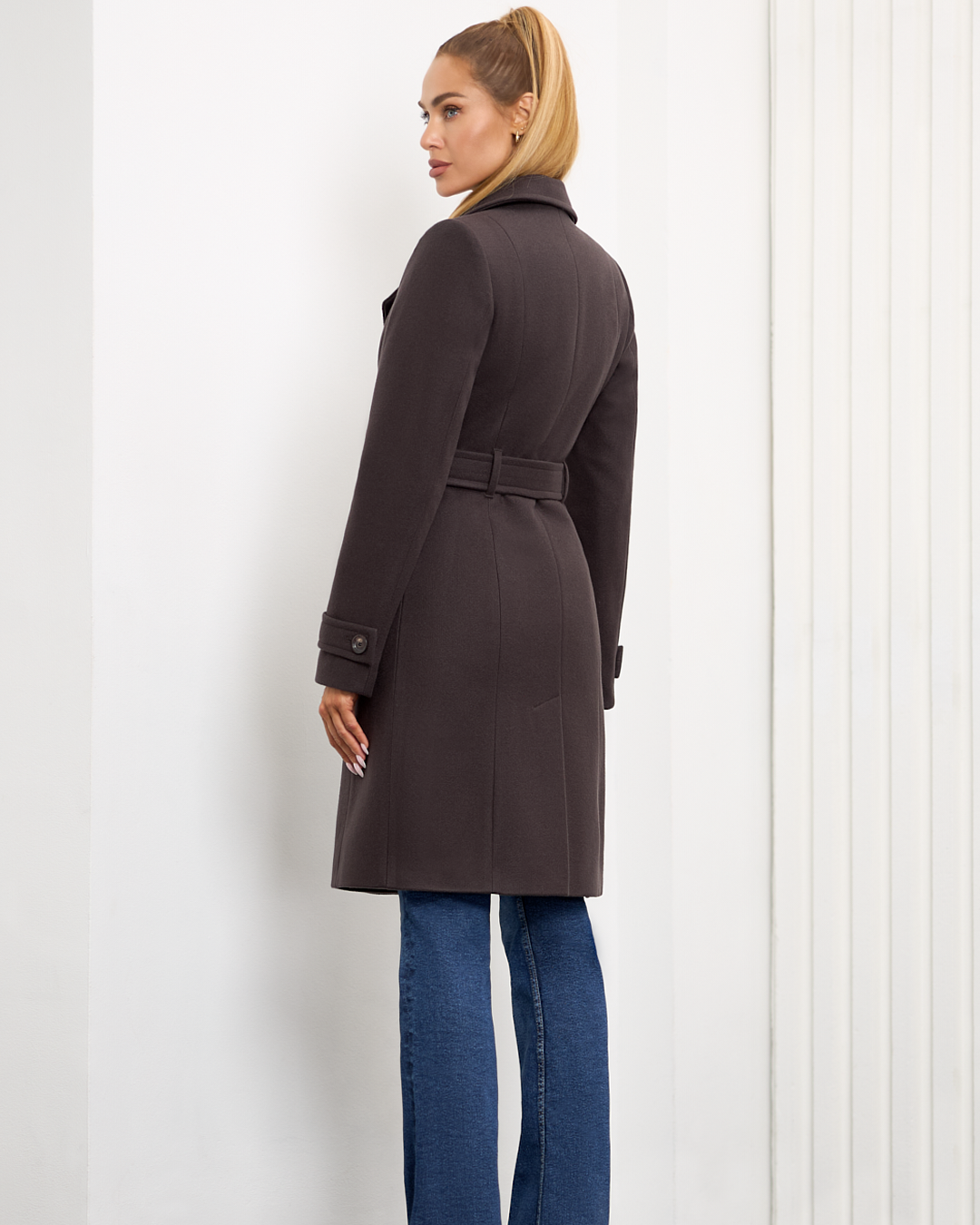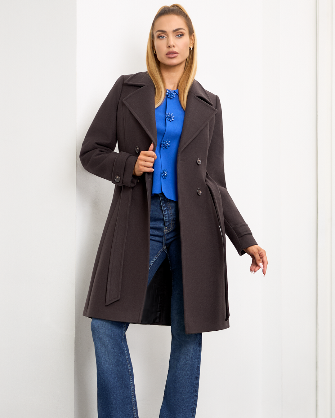 Mila to klasyczny, dopasowany płaszcz w miejskim stylu, stworzony z myślą o codziennym komforcie i elegancji. Dwurzędowe zapięcie na guziki nadaje mu wyrazistego charakteru, a kołnierz z klapami podkreśla ponadczasowy szyk. Pasek w talii pozwala dopasować fason i podkreślić sylwetkę, a kieszenie po bokach wprowadzają praktyczny akcent. Rozporek z tyłu dodaje lekkości i swobody ruchu. Ocieplany, wykończony podszewką i sięgający przed kolano, doskonale sprawdzi się w chłodniejsze dni sezonu jesień–zima, stając się niezawodnym towarzyszem codziennych stylizacji.