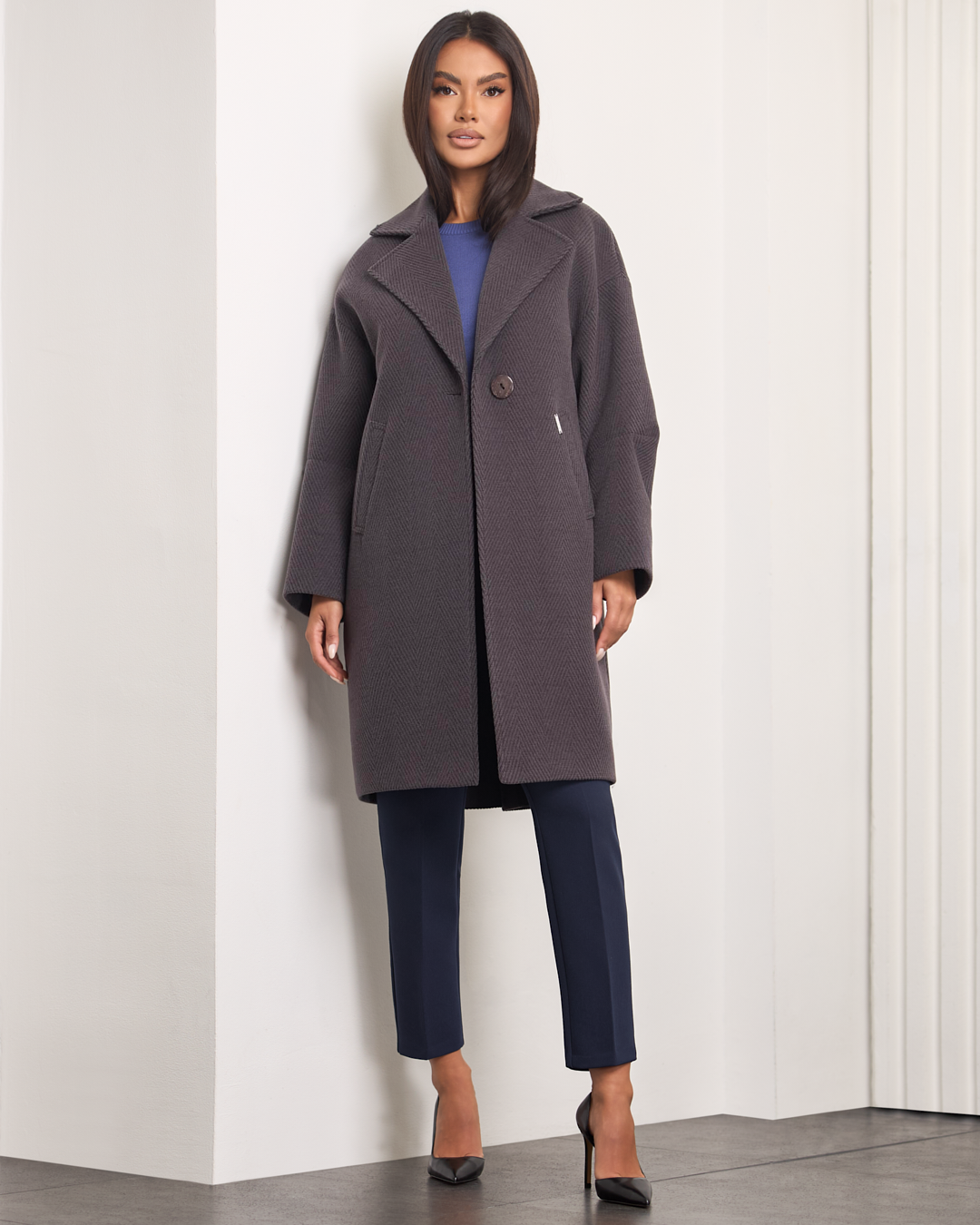 Neya to model pudełkowy o prostym, nowoczesnym fasonie, który zachwyca minimalizmem i wygodą. Opuszczona linia ramion dodaje lekkości i nonszalancji, pojedynczy guzik subtelnie podkreśla elegancję całości. Kieszenie po bokach wprowadzają nutę praktyczności, a rozporek z tyłu zapewnia swobodę ruchu. Dzięki ociepleniu i miękkiej podszewce płaszcz otuli Cię przyjemnym ciepłem, chroniąc przed zimnem w jesienno-zimowe dni. Jego długość przed kolano sprawia, że doskonale komponuje się zarówno z codziennymi, jak i bardziej eleganckimi stylizacjami.