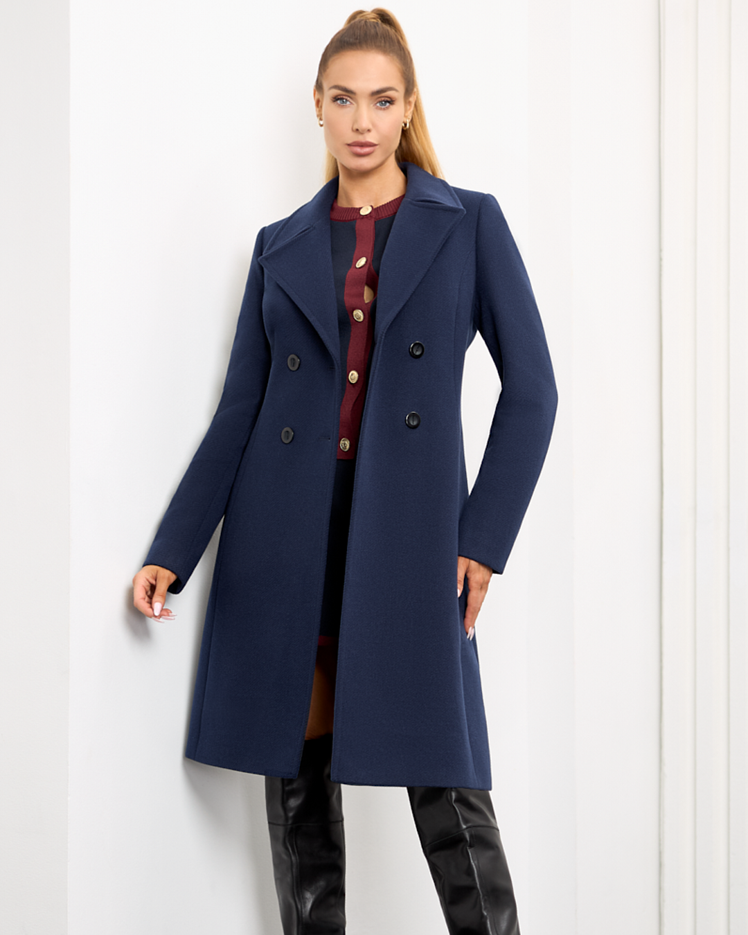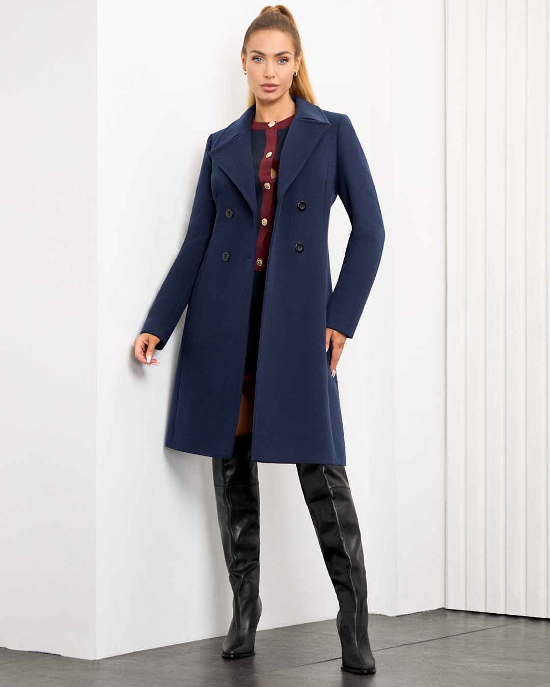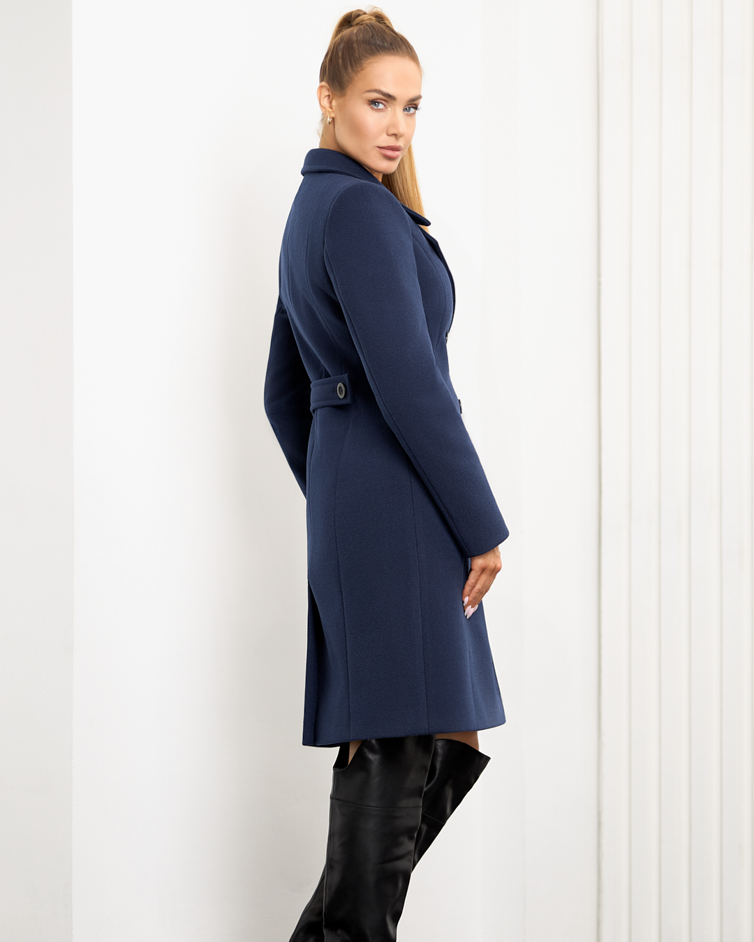 Paris to dopasowany, ocieplany płaszcz o długości przed kolano, który emanuje niepowtarzalnym paryskim szykiem. Dwurzędowe guziki i kołnierz z klapami nadają mu elegancji, a rozporek z tyłu zapewnia lekkość i swobodę ruchu. Kieszenie po bokach łączą funkcjonalność z subtelnym stylem, a ozdobna patka z guzikami z tyłu dodaje wyjątkowego, modowego akcentu. Wykończony podszewką, otula ciepłem w chłodniejsze dni, a dopasowany fason pięknie podkreśla kobiece kształty, pozwalając poczuć się jak w samym sercu paryskiej ulicy – elegancko, stylowo i z klasą.