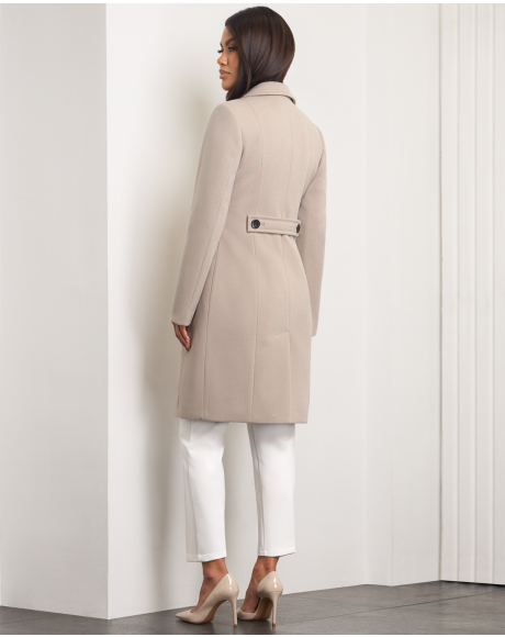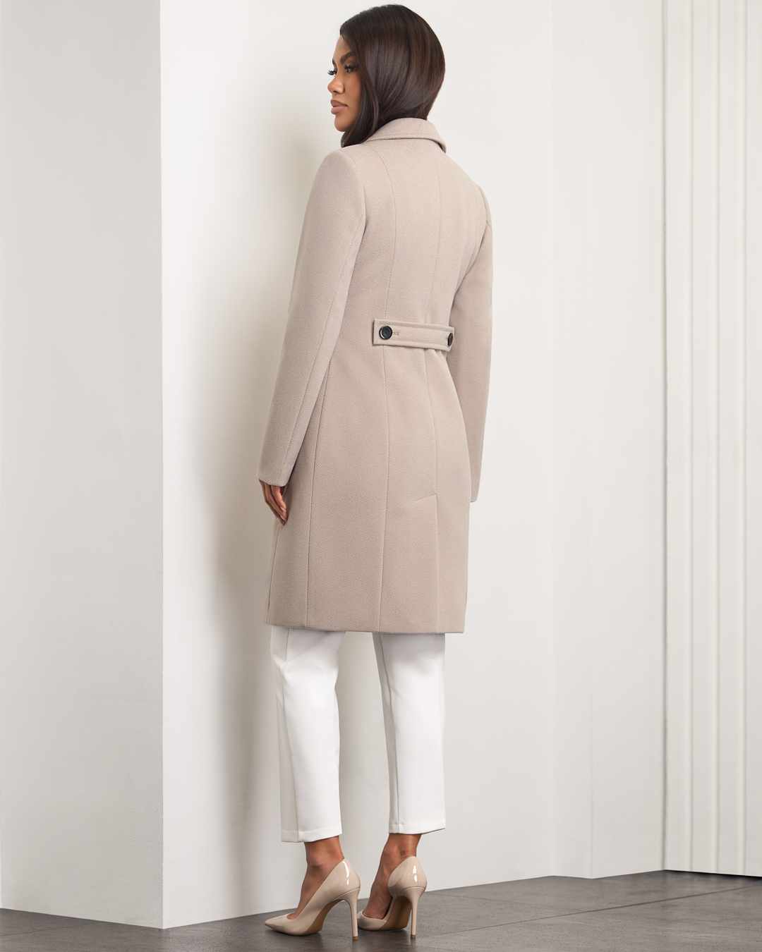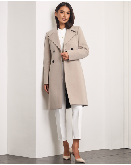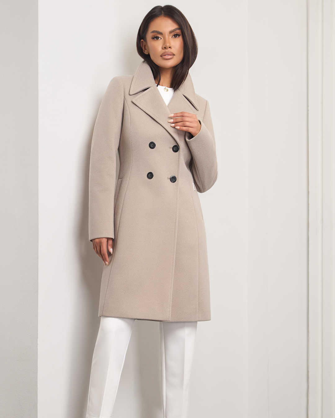 Paris to dopasowany, ocieplany płaszcz o długości przed kolano, który emanuje niepowtarzalnym paryskim szykiem. Dwurzędowe guziki i kołnierz z klapami nadają mu elegancji, a rozporek z tyłu zapewnia lekkość i swobodę ruchu. Kieszenie po bokach łączą funkcjonalność z subtelnym stylem, a ozdobna patka z guzikami z tyłu dodaje wyjątkowego, modowego akcentu. Wykończony podszewką, otula ciepłem w chłodniejsze dni, a dopasowany fason pięknie podkreśla kobiece kształty, pozwalając poczuć się jak w samym sercu paryskiej ulicy – elegancko, stylowo i z klasą.