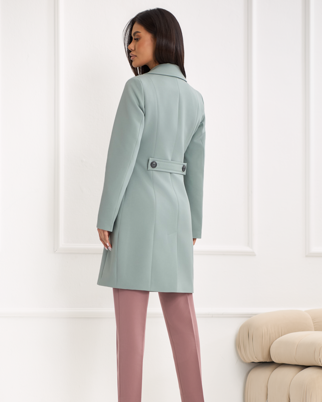 Paris to dopasowany, taliowany płaszcz o długości przed kolano, który emanuje niepowtarzalnym paryskim szykiem. Dwurzędowe guziki i kołnierz z klapami nadają mu elegancji, a rozporek z tyłu zapewnia lekkość i swobodę ruchu. Kieszenie po bokach łączą funkcjonalność z subtelnym stylem, a ozdobna patka z guzikami z tyłu dodaje wyjątkowego, modowego akcentu. Wykończony podszewką. Pięknie podkreśla kobiece kształty, pozwalając poczuć się jak w samym sercu paryskiej ulicy - elegancko, stylowo i z klasą.