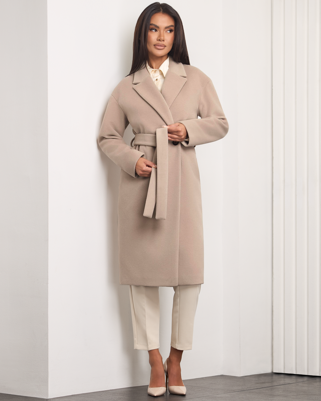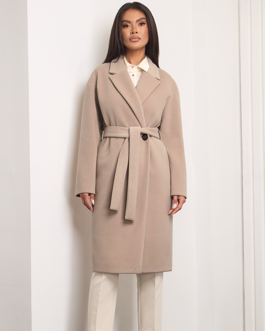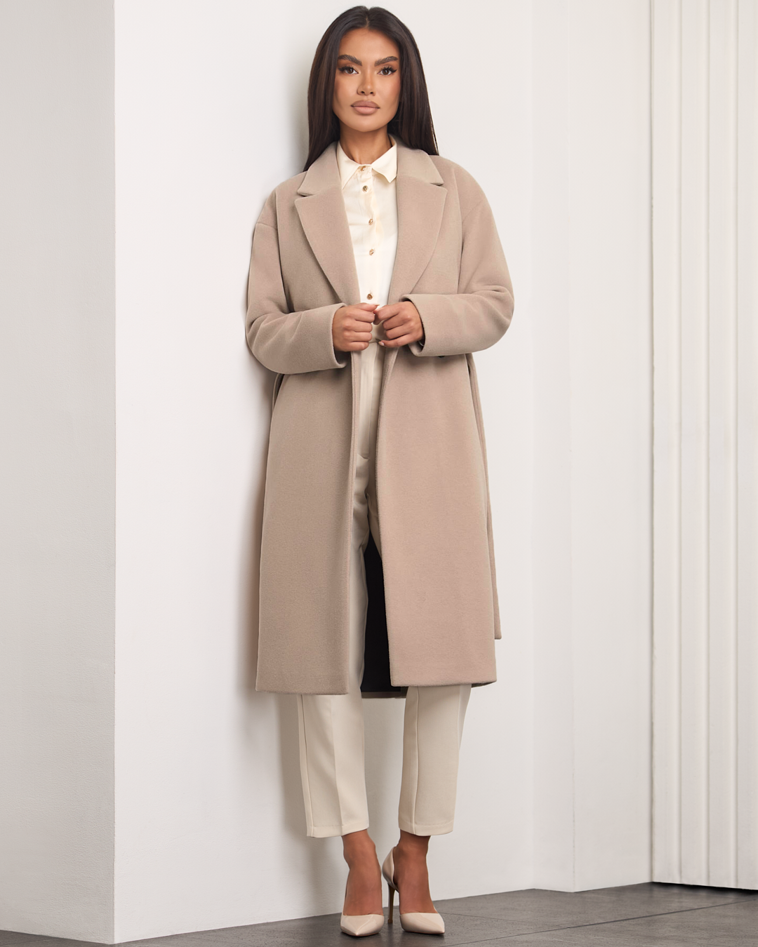Selena to płaszcz o luźniejszym, swobodnym fasonie, który łączy elegancję z komfortem codziennego noszenia. Klasyczny kołnierz z klapami dodaje mu szyku, a opuszczona linia ramion wprowadza lekkość i naturalny luz. Zapinany na guziki, z paskiem w talii do regulacji sylwetki, pozwala dopasować fason do własnych potrzeb. Boczne kieszenie i rozporek z tyłu łączą funkcjonalność z wygodą ruchu. Ocieplany i wykończony podszewką, sięga za kolano, tworząc idealną ochronę przed zimnem przy zachowaniu stylowego charakteru.