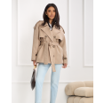 Sydney to modowy must-have sezonu. Luźniejszy fason przełamany paskiem w talii pięknie podkreśla kobieca sylwetkę, a raglanowe rękawy zapewniają swobodę i nowoczesną linię ramion. Patki na ramionach oraz na rękawach nadają całości wyrazisty, trenchowy charakter. Dwurzędowe zapięcie i szerokie klapy podkreślają jego stylowy look, a długość do bioder idealnie wpisuje się w miejskie, trendowe stylizacje. Model wykończony podszewką oraz wyposażony w kieszenie z patką łączy modny design z funkcjonalnością - idealny wybór na sezon wiosenny i jesienny.