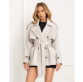 Sydney to modowy must-have sezonu. Luźniejszy fason przełamany paskiem w talii pięknie podkreśla kobieca sylwetkę, a raglanowe rękawy zapewniają swobodę i nowoczesną linię ramion. Patki na ramionach oraz na rękawach nadają całości wyrazisty, trenchowy charakter. Dwurzędowe zapięcie i szerokie klapy podkreślają jego stylowy look, a długość do bioder idealnie wpisuje się w miejskie, trendowe stylizacje. Model wykończony podszewką oraz wyposażony w kieszenie z patką łączy modny design z funkcjonalnością - idealny wybór na sezon wiosenny i jesienny.