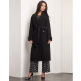 E - Długość rękawa: mierzymy płaszcz na płasko od szczytu rękawa do krawędzi dolnej.
