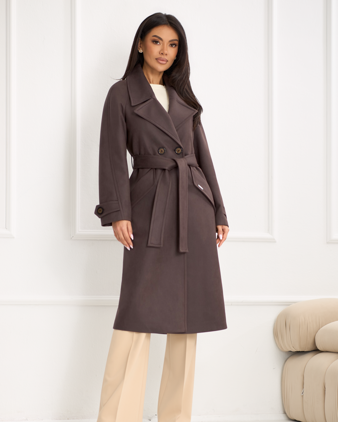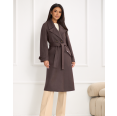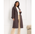 Tessa to płaszcz o lużniejszym fasonie, który idealnie wpisuje się w modowy look. Efektowny kołnierz z klapami i zapięcie na guziki nadają mu eleganckiego charakteru, a pasek w talii pozwala podkreślić sylwetkę oraz dopasować fason do własnego stylu. Rękaw raglanowy dodaje nowoczesności i swobody, a kieszenie z patką wprowadzają stylowy detal. Rozporek z tyłu podkreśla lekkość kroju, a długość do połowy łydki sprawia, że płaszcz prezentuje się wyjątkowo szykownie. Wykończony podszewką, jest doskonałym wyborem na wiosenne i jesienne dni, gdy chcemy połączyć elegancję z modowym wyrazem.