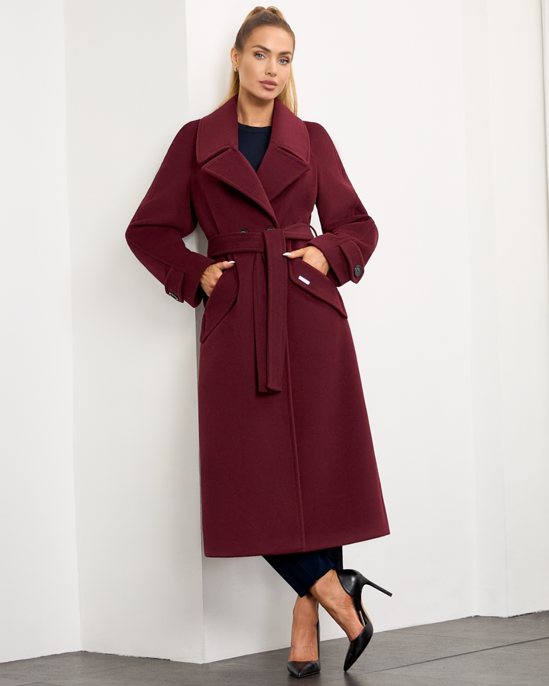Tessa to długi, ocieplany płaszcz, o lużniejszym fasonie, który łączy klasykę z subtelną nutą nowoczesności. Kołnierz z klapami, zapinany na guziki podkreśla jego elegancki charakter, a pasek w talii pozwala nadać sylwetce idealne proporcje. Rękaw raglanowy zapewnia wygodę i swobodę ruchu, a kieszenie z patką wprowadzają praktyczny i jednocześnie stylowy detal. Rozporek z tyłu dodaje lekkości całości. Wykończony podszewką, otuli ciepłem w chłodniejsze dni, stając się niezawodnym wyborem na sezon jesień–zima.