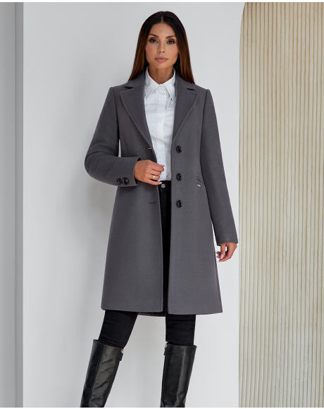 Tina to klasyczny, dopasowany model, który podkreśla sylwetkę i emanuje ponadczasową elegancją. Jednorzędowe zapięcie na guziki dodaje mu szyku, boczne kieszenie wprowadzają praktyczny akcent. Rozporek z tyłu zapewnia swobodę ruchu, a ocieplenie i miękka podszewka otulają przyjemnym ciepłem w chłodne dni. Długość przed kolano sprawia, że płaszcz doskonale komponuje się zarówno z codziennymi, jak i bardziej eleganckimi stylizacjami.